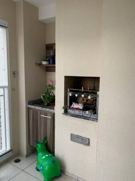 VARANDA COM CHURRASQUEIRA, ENVIDRAÇADA COM TELA DE PROTEÇÃO